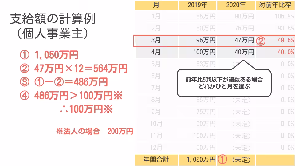 支給額は売上減少の程度によって変わるためです。