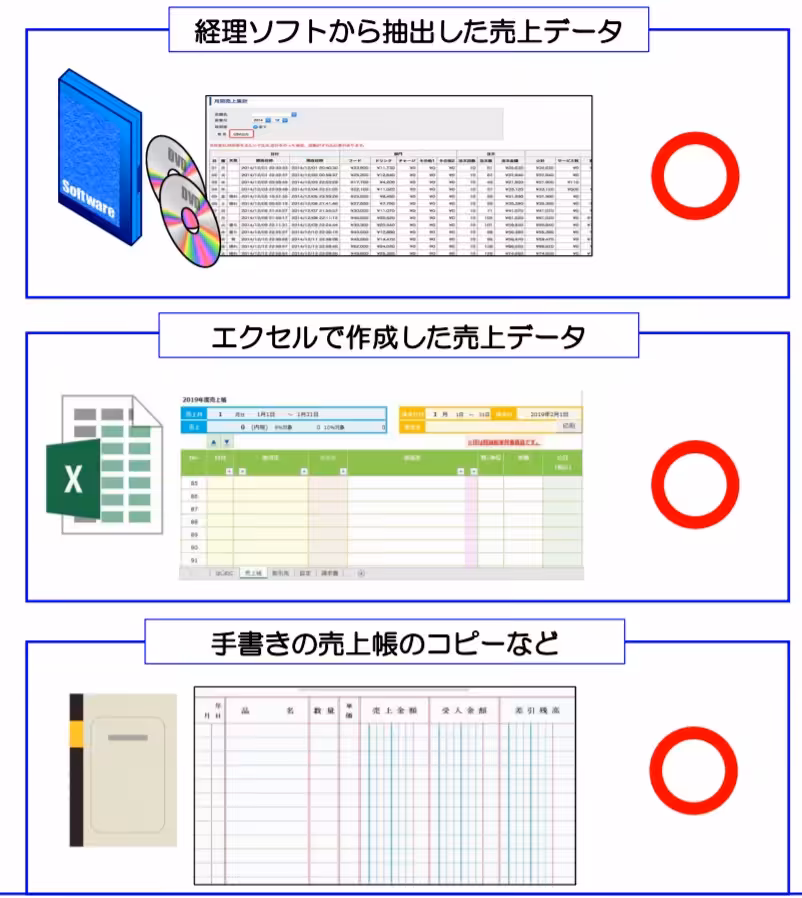 様式は特に決まっていません。ふだん売上管理のために使っている帳票類をそのまま提出すればかまいません。