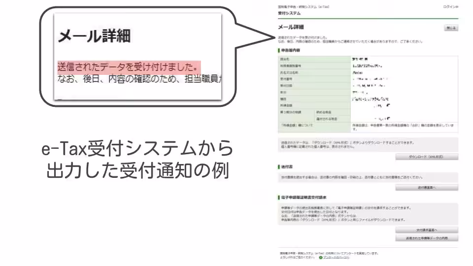 受信通知は、e-Tax受付システムから随時閲覧できます。