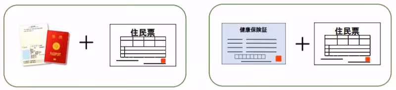 - 住民票の写しと、パスポート(顔写真の掲載されているページ)