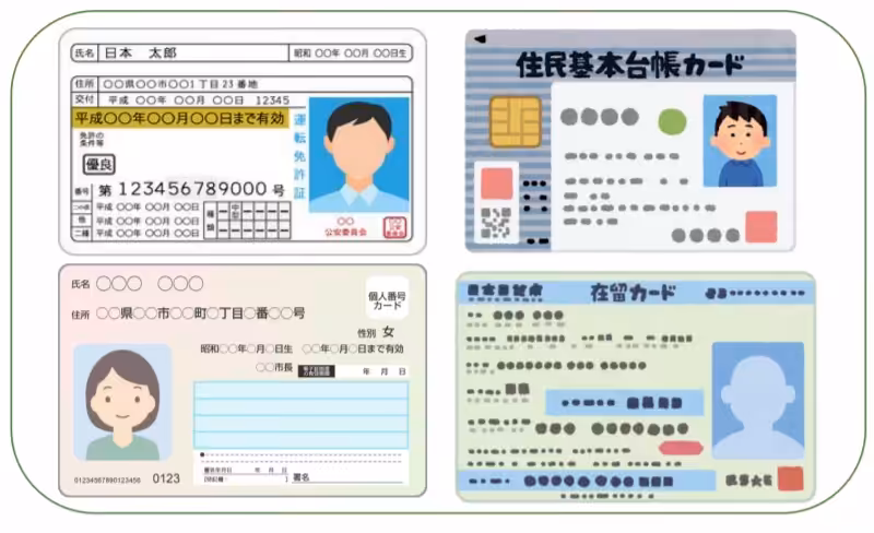 - 在留カード、特別永住者証明書、外国人登録証明書(在留資格が特別永住者のものに限る)【両面】