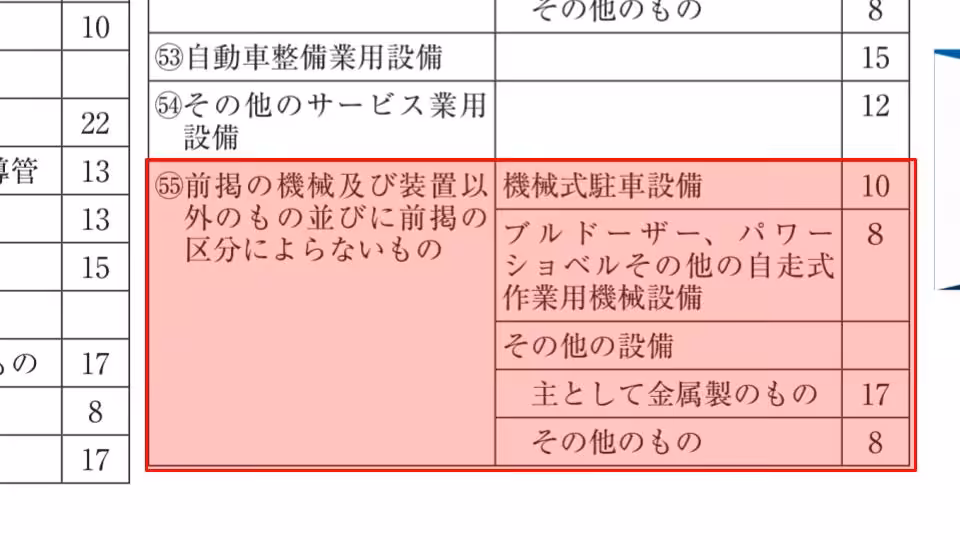 ところで、機械装置の耐用年数表は『〇〇業用設備』という区別がされています。