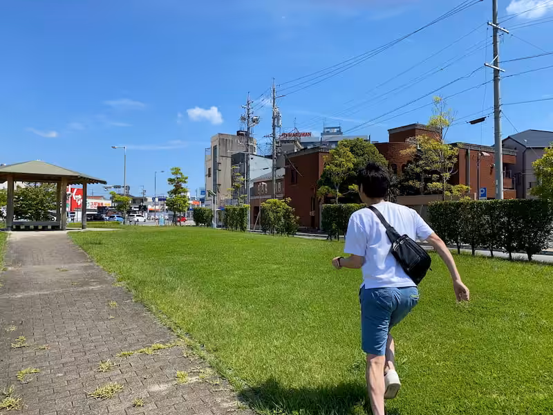 わたくしもこの通り、ウキウキで西尾駅前広場を走り回っております。