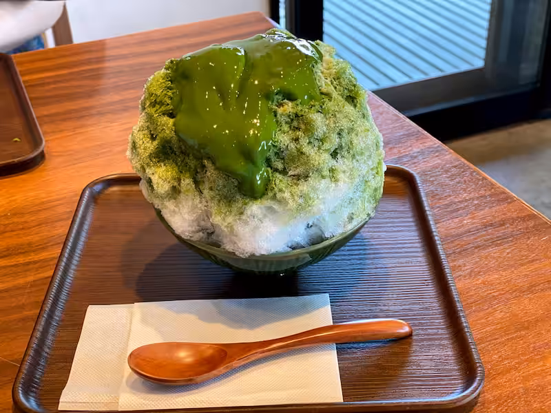 ふわふわの氷に、茶道用抹茶を使用した濃厚な抹茶蜜やエスプーマのやわらかな口当たりから広がる本物の抹茶味をおたのしみください。中に隠れた沖縄黒糖アイスと抹茶氷の相性も抜群です。
