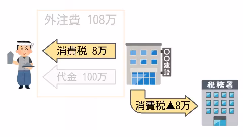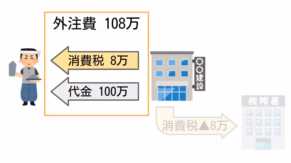 この8万円は、企業が税務署へ納税する消費税額から差し引くことが出来ます。外注先に消費税を払った分だけ、税務署へは納税せずにすむのです。