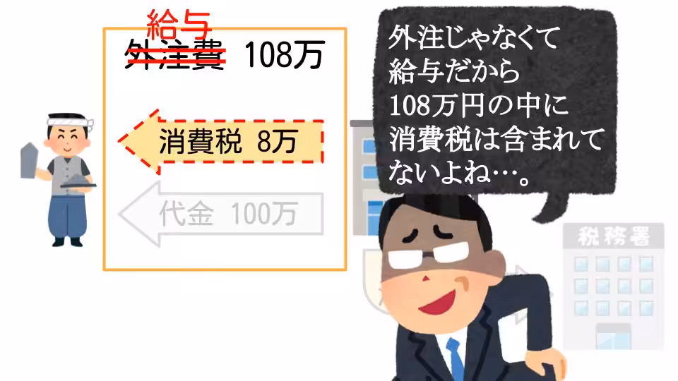 一方の給与には、消費税がかかりません。108万円支払ったなら、その全部が給与です。