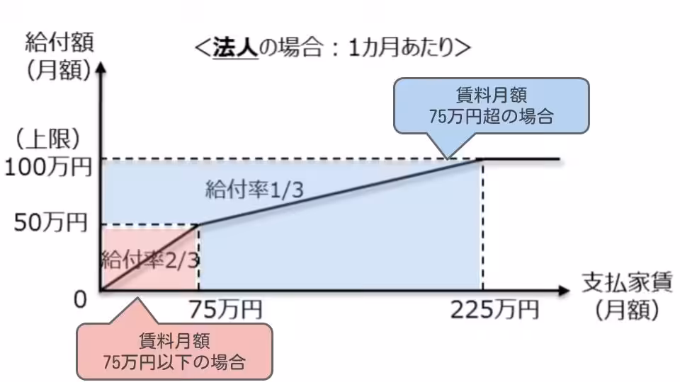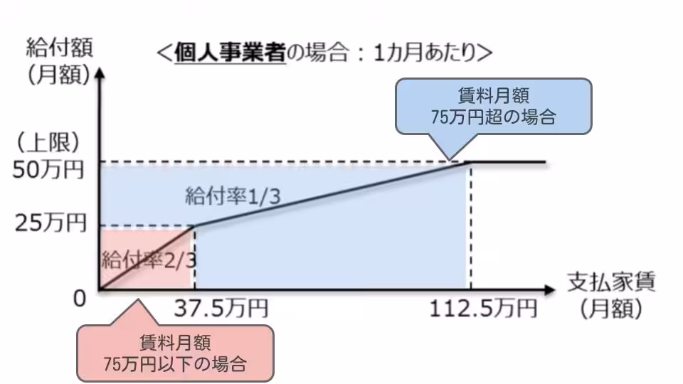 実際の支給額は、その法人や個人事業者が支払っている賃料の月額※によって変わります。